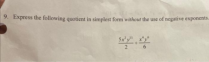 Solved 9 Express The Following Quotient In Simplest Form Chegg Com
